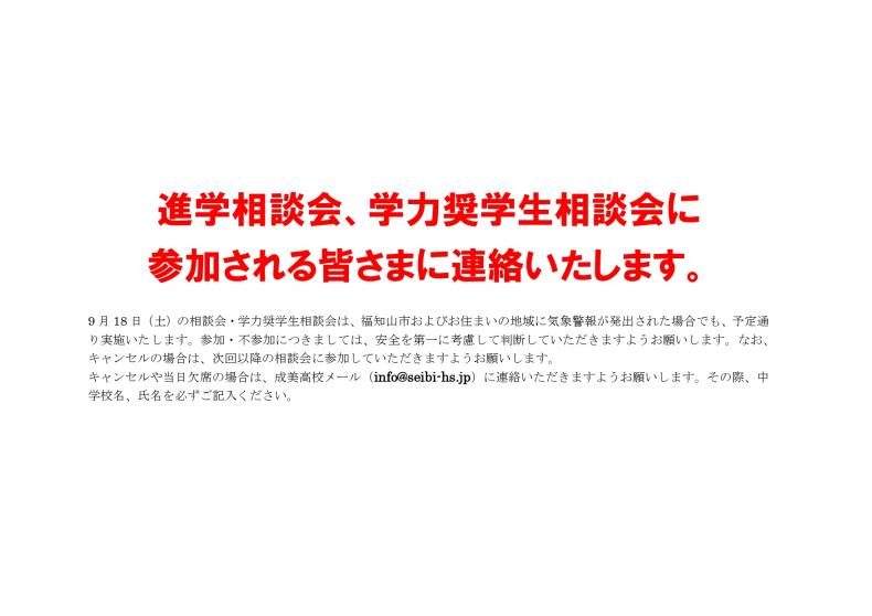 進学相談会、学力奨学生相談会に参加される皆さまに連絡いたします。