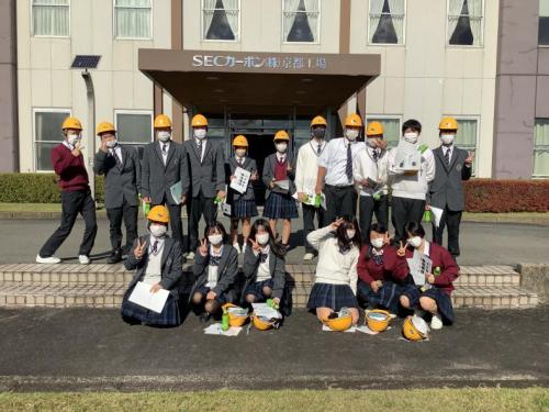 10月27日(水)、キャリアプラス課外授業の職業教育の一環として、長田野工業センターさん、京都府中丹広域振興局さんのご協力のもと、午前中はエスペック(株)様、午後はSECカーボン(株)様に工場見学に行かせて頂きました。エスペックは耐熱性・耐寒性など動作環境を試験するマシーンを創る企業ということもあり、大きな機械が仕事をする建屋や、手作業や検査など人の手を必要とする建屋などに分かれていました。女性も多く働いておられ、女性が働きやすい職場なのだなと感じました。SECカーボンはとても敷地が広く、1つ1つの建屋もとても大きく、そのダイナミックさに圧倒されました。カーボンという巨大な素材を加工する工場ということもあり、力強いカッコいい男性が多く活躍されていたのが印象的でした。来年はいよいよ就職の年です。働く現場を実際に目にし、「働くを知る」ことが出来たのではないでしょうか。とても貴重な経験をさせて頂いた素晴らしい1日となりました。