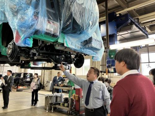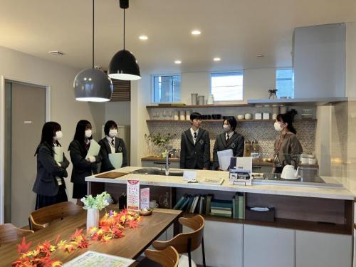 情報コースの3年1組の「キャリアプラス課外授業」で、10月30日(月)は住宅編としてハウジングピア福知山へ行き、セキスイハイム、ユニバーサルホーム、住友林業、パナソニックホームズ、積水ハウスと計5棟のモデルハウスを見学、10月31日(火)は自動車編として大嶋カーサービスの平井さんによる出前授業と、店舗へ移動しての実車見学を行いました。
