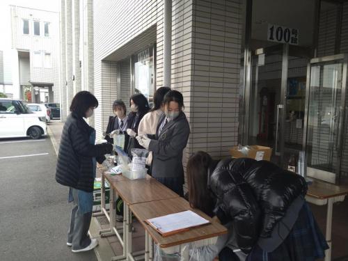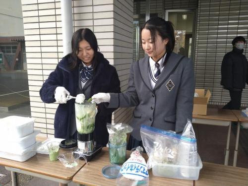 12月1日(金)、商業科情報コース2年1組は1年時から取組んできた山城屋茶舗さんとの商品開発の集大成として校内販売を実践しました。「大人が美味しい」と感じる抹茶のスイーツドリンクはどんな味だろう?と高校生の目線から想像しての創作でした。寒い中でコールドドリンクの販売となりましたが、多くの生徒や先生が購入に足を運んでくださいました。商品を創作する楽しさと難しさ、売ることの緊張感と幸福感を得られる貴重な体験となりました。