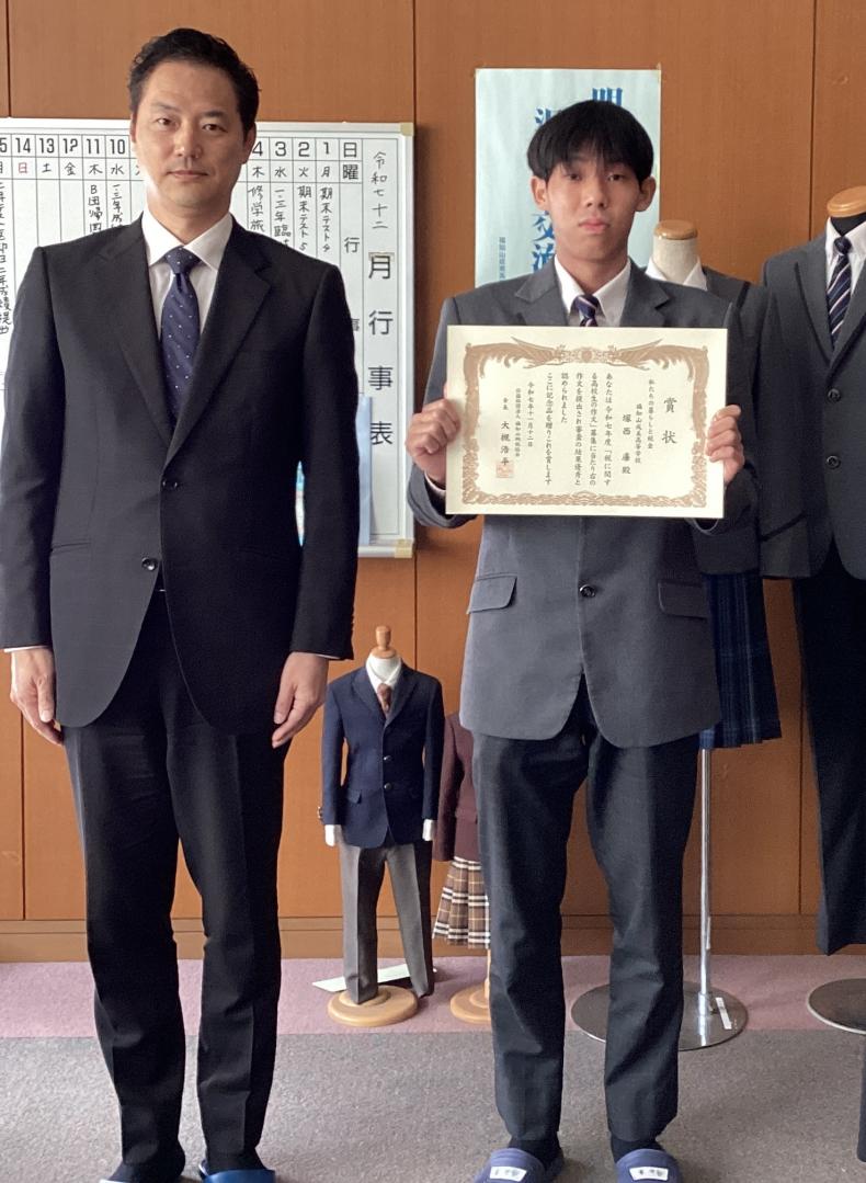 塚西 廉君(3年1組)、「私たちの暮らしと税金」作文コンクールで優秀賞を受賞!