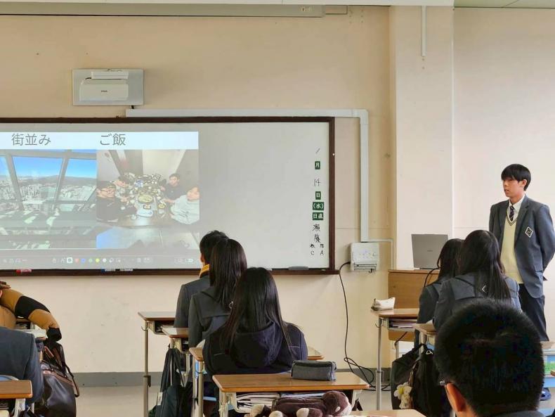 3年生は、韓国研修での学びを発表しました。異文化に触れた経験や、現地での交流を通して感じた価値観の違いを、落ち着いた態度でわかりやすく伝える姿が印象的でした。これまで積み重ねてきた学びと経験が発表内容にも表れ、最上級生らしい自信を感じさせてくれました。