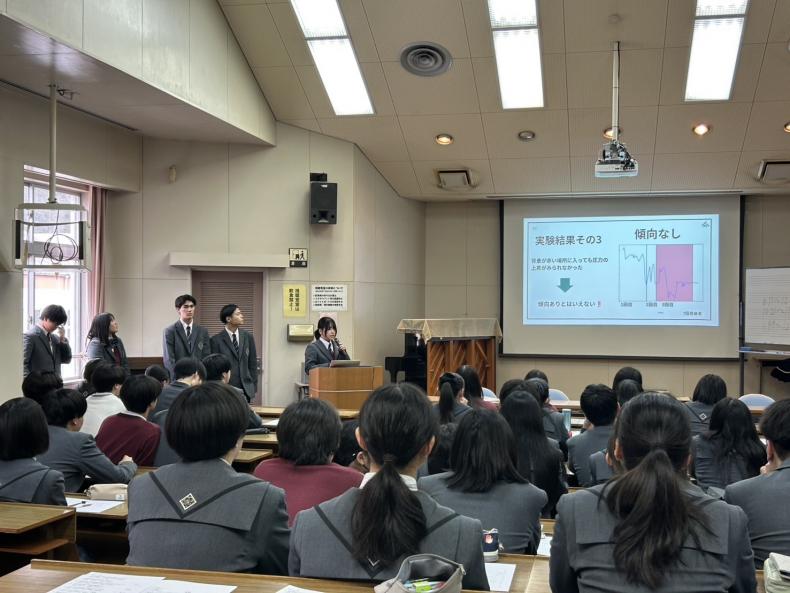 そして,1年間の成果を他のグループの生徒や教職員の前で発表しました。