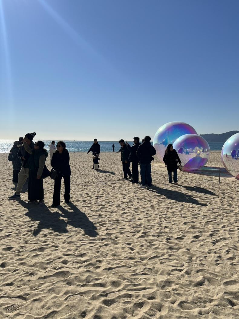 釜山の代表的なリゾート地である海雲台(ヘウンデ)に足を運びました。青い海と広い砂浜が広がるこのエリアは、まるで芸術とリゾートが融合した世界観を持つ観光地のようです!