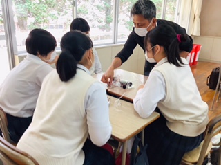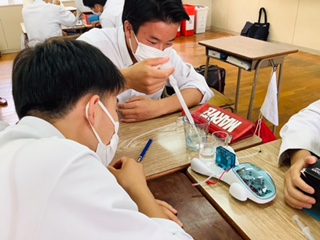 6月17日(金)5~6時間目、2年1組情報コースでは、「キャリアプラス“HONDA探求みらい授業”」と題して、ホンダテクニカルカレッジ関西より、本田技研工業(株)の現役社員である住吉学先生にお越しいただきました。5時間目の「しごと探求授業」では、自分らしい仕事の見つけ方として、「好きなことか」「得意なことか」「大事なことか」の観点が大事という話や、今高校時代に身につけてほしい力として、「前に踏み出す力」「考え抜く力」「チームで働く力」が大切で、自ら走り出す人「自走人」になってほしいという話に大変共感しました。6時間目の「水素自動車体験授業」では、これからの未来の自動車の主要エネルギーとなる水素を各グループで水と電池から作り出し、自ら水素自動車を動かす実験をしました。笑顔溢れるキャリアプラス探求みらい授業となりました。