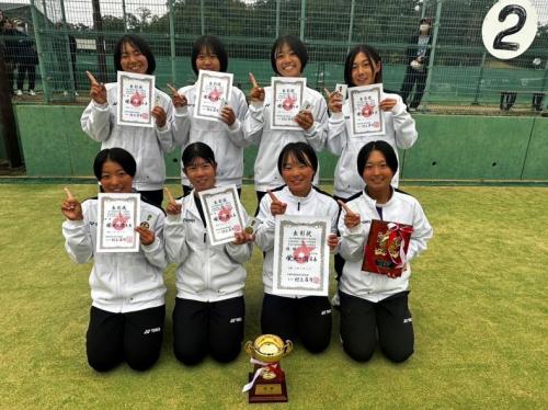 ソフトテニス部の女子が京都府高等学校ソフトテニス選抜団体戦で優勝しました(6年ぶり6回目)。来年1月、滋賀県で行われる近畿高等学校選抜インドア大会団体戦に出場します。応援いただいた皆様、ご声援ありがとうございました。