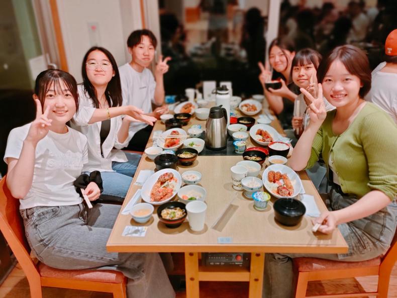 合宿には本校国際コースを卒業した大学生4名がサポーターとして参加しており、生徒たちは先輩たちから貴重な体験談やアドバイスなどを聞くことができました。また、2年生は、昨年度の経験を生かして、「率先垂範」の姿勢をもって活動をリードしてくれました。