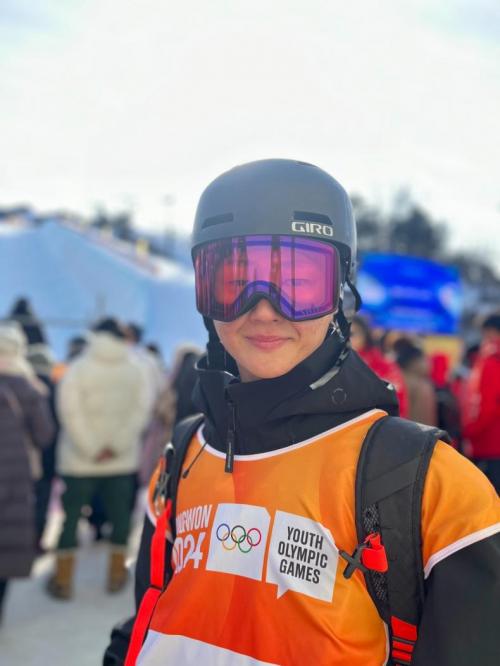 スノーボードハーフパイプ 嶋﨑 玖君(2年3組)がユースオリンピック9位に!