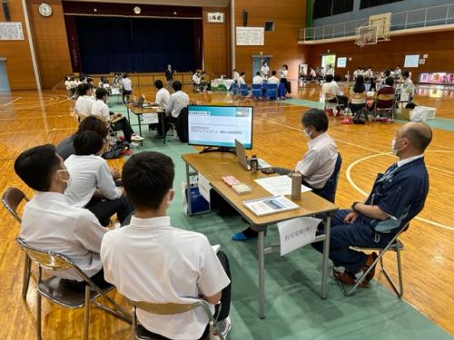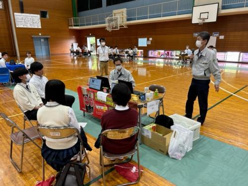 6月9日(金)の1時間目〜4時間目を使って、福知山成美高校の体育館でジョブフェスタが開催されました。
